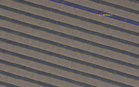 玻璃表面氧化銦錫(ITO),銀漿(Ag)、碳納米管(CNT)、石墨烯、納米銀、鉬鋁鉬、銅、高分子導電膜、鋁薄膜、PERC、鈣鈦礦電池、氧化鋅、FTO、TCO等涂層材料的超細線寬激光蝕刻。